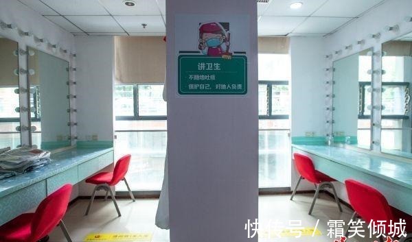 记者在中南剧院大剧院后台看到,更衣室被分成不同的隔间。原本可以容纳三四个人的包厢,只能同时容纳两个演员。在更衣室外,演员的休息区也张贴了分隔座位的标志。